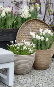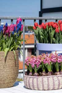 È facile creare un meraviglioso contesto fiorito sul balcone o sul terrazzo. I bulbi primaverili, infatti, crescono bene anche in vasi e fioriere, o persino in secchi e cestini. Inoltre, i bulbi di fiore in vaso sono molto flessibili, poiché puoi posizionarli dove desideri: accanto alla porta di ingresso, lungo una ringhiera o raggruppati in un angolo. Quando i bulbi iniziano a germogliare, creano subito una piacevole atmosfera primaverile.
