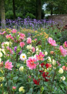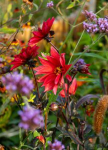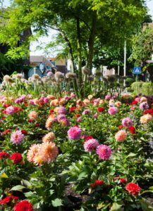 Le dalie sono splendide sia in gruppi che in composizioni miste e si combinano perfettamente con altre piante. La Verbena bonariensis dona leggerezza, mentre le graminacee ornamentali aggiungono struttura e movimento. Le combinazioni con fioriture estive come Canna e Crocosmia rafforzano l’effetto stagionale. In ogni composizione, le dalie offrono un elevato valore estetico.